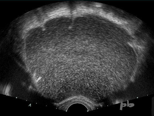 Image hypoéchogène homogène et régulière.
