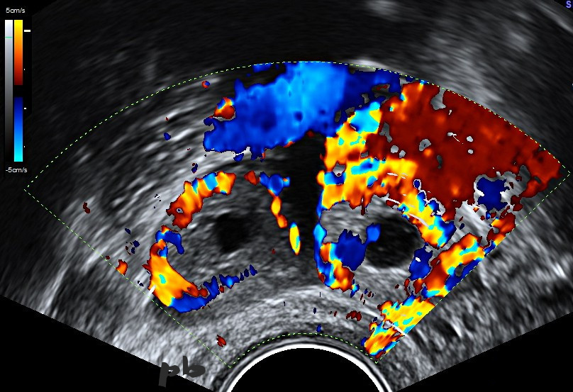 Vascular ring around both images. Doppler does not allow for differential diagnosis.